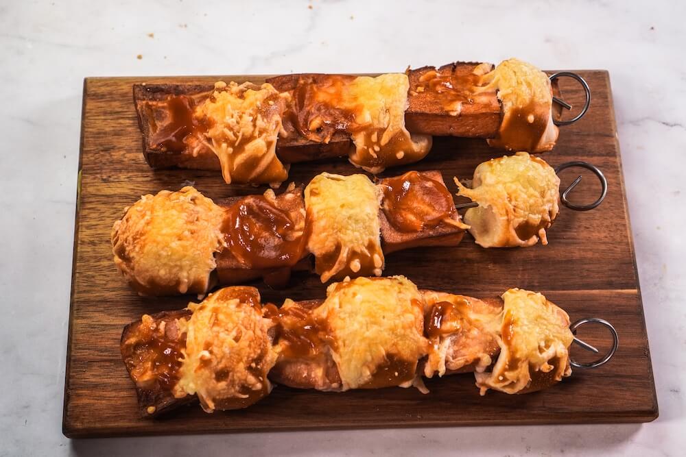 Gericht 1: Laugen-Leberkäse Spieße mit Käse