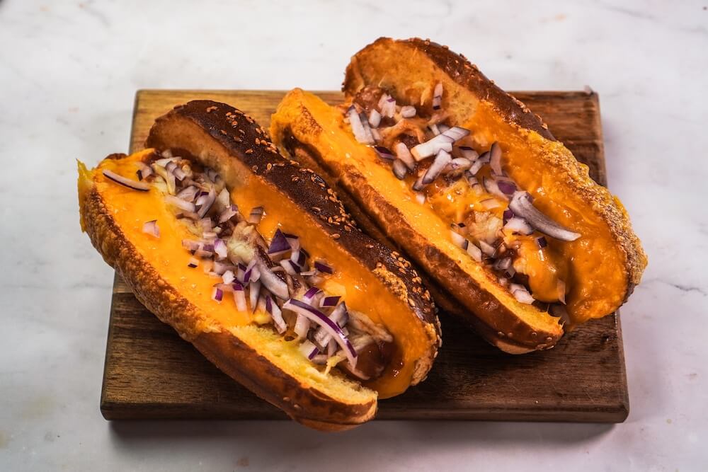 Gericht 2: Käsige Laugen Brioche Hotdogs mit Knoblauchbutter