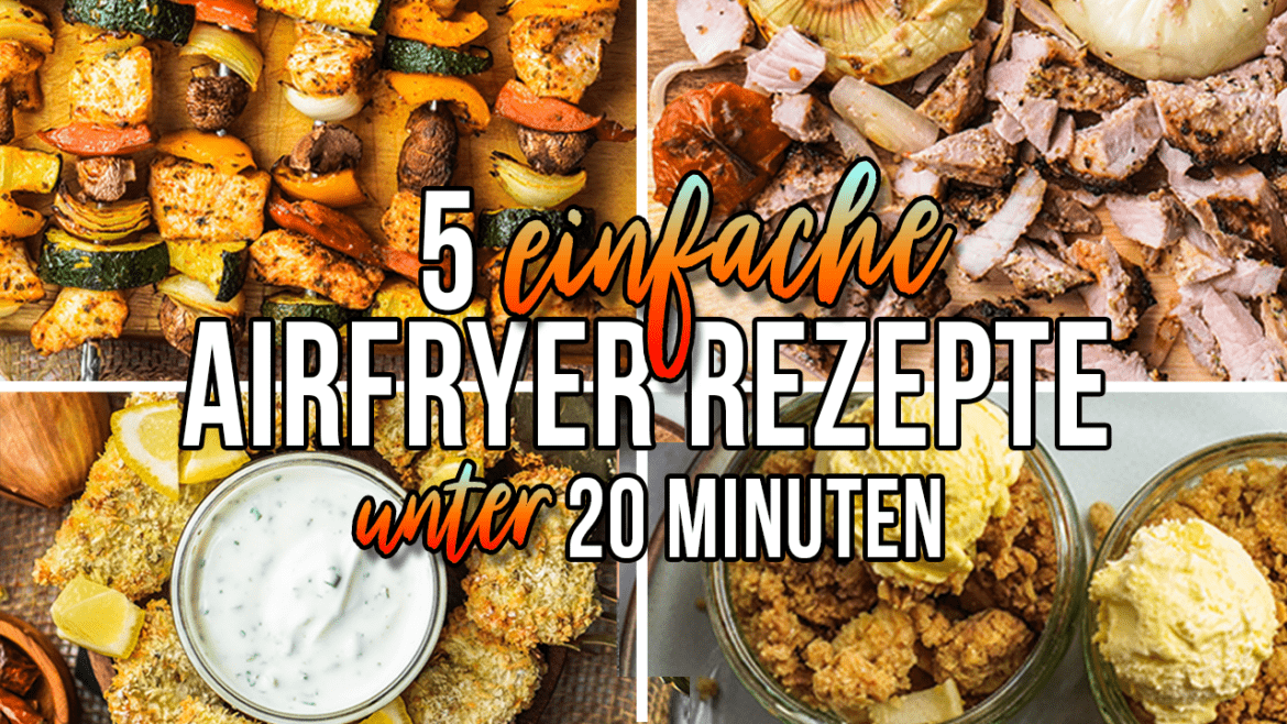 Hier findest du alle Rezepte aus meinem YouTube Video „5 einfache Airfryer Gerichte unter 20 Minuten“!