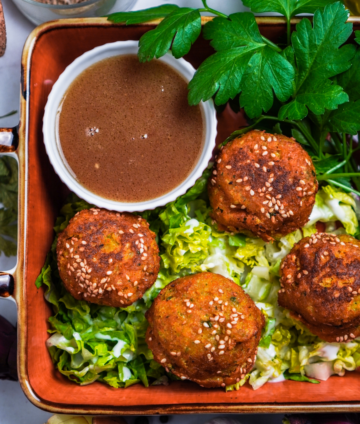 - Öl auf 170 Grad erhitzen und Falafel goldbraun knusprig frittieren, mit Salat und Soße servieren, fertig!