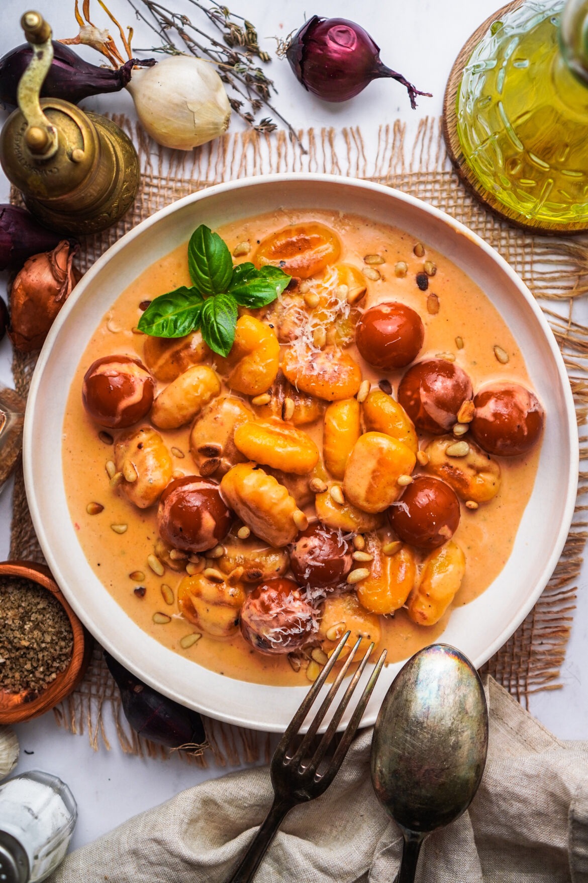 Dieses leckere Gnocchi Gericht ist mal wieder super einfach und schnell gemacht, durch den Parmesan in der Soße wird diese richtig cremig – unbedingt ausprobieren! 🙂