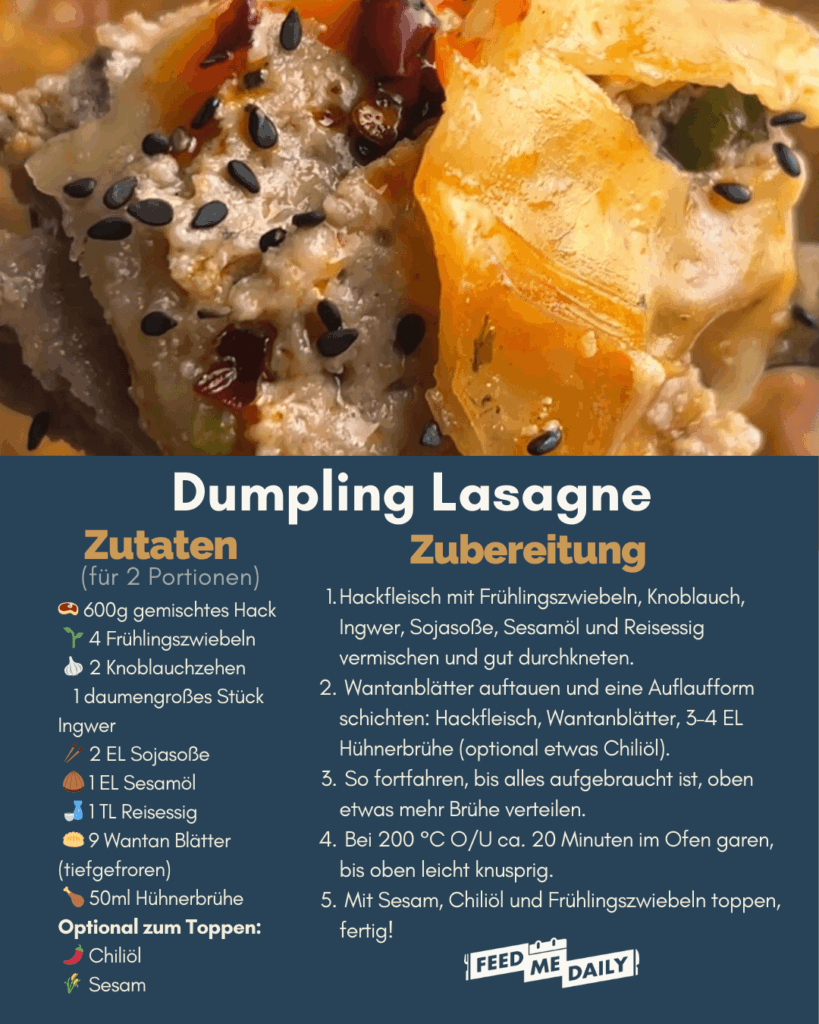 Asiatische Aromen treffen auf Lasagne-Vibes – perfekt für alle, die schnell etwas Besonderes auf den Tisch bringen wollen. Wenig Aufwand, maximaler Geschmack und ideal als Mealprep oder Familienessen.