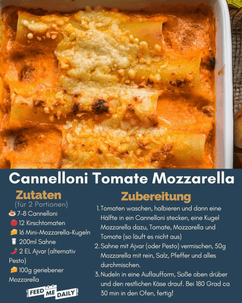 Ja, die Cannelloni lassen sich gut vorbereiten und abgedeckt im Kühlschrank lagern. Auch aufgewärmt schmeckt das Gericht noch sehr gut, ideal für Mealprep oder den nächsten Tag.