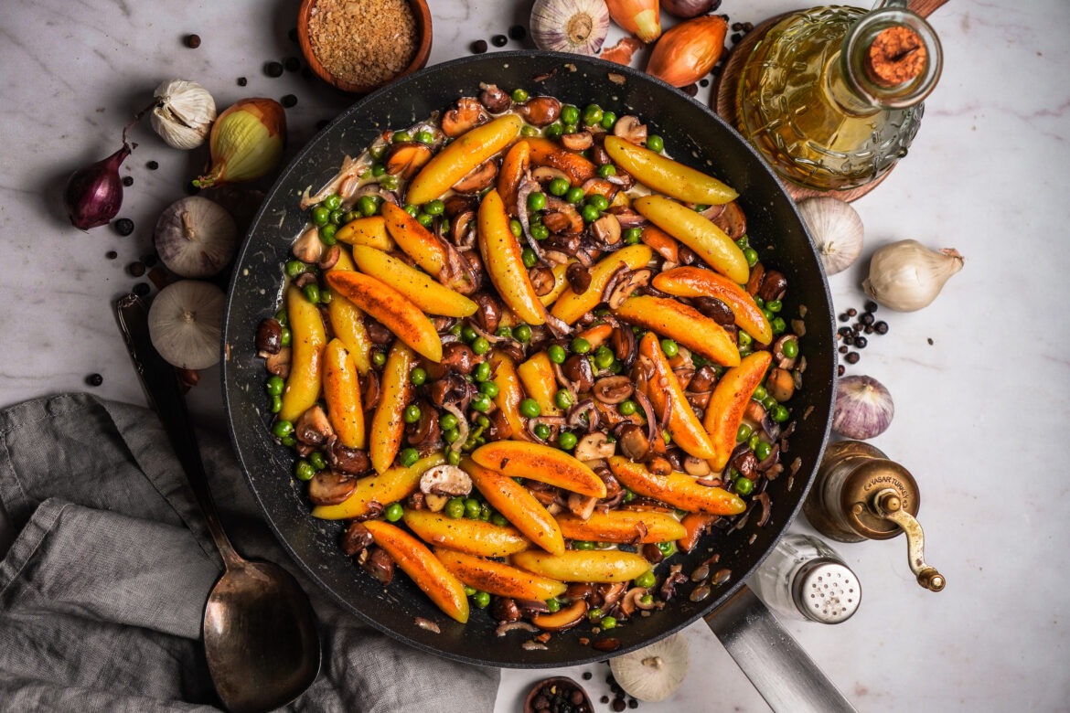 Wer von euch steht auch so auf Schupfnudeln, wie ich? Besonders wenn die goldbraun gebraten sind finde ich die perfekt 😀 Daher habe ich mal wieder eine Schupfnudel Pfanne gemacht, mit Erbsen und Pilzen weil die beiden sich nicht nur im Geschmack sondern auch in der Konsistenz schön ergänzen!