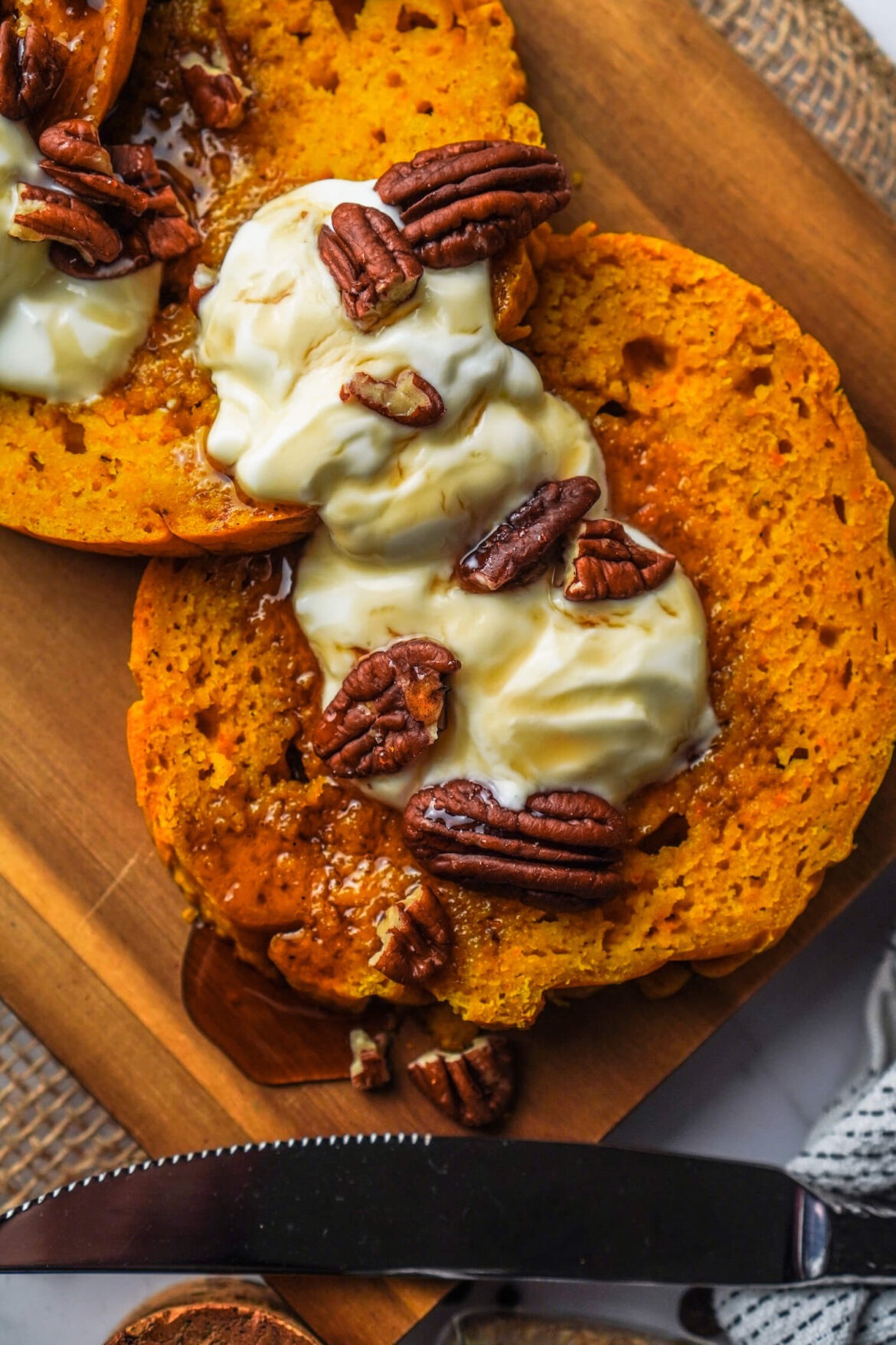 - Etwas abkühlen lassen, dann aufschneiden und zusammen mit den Toppings servieren, fertig!