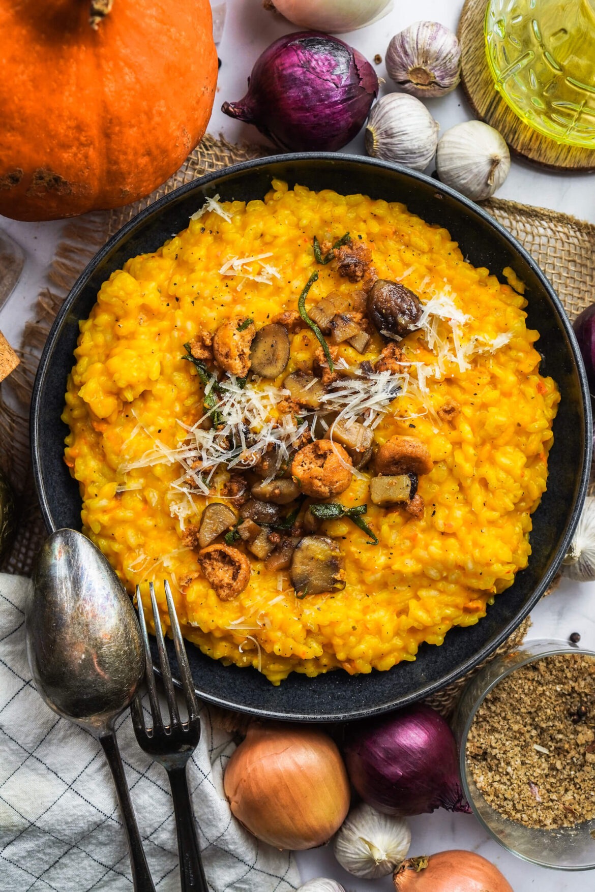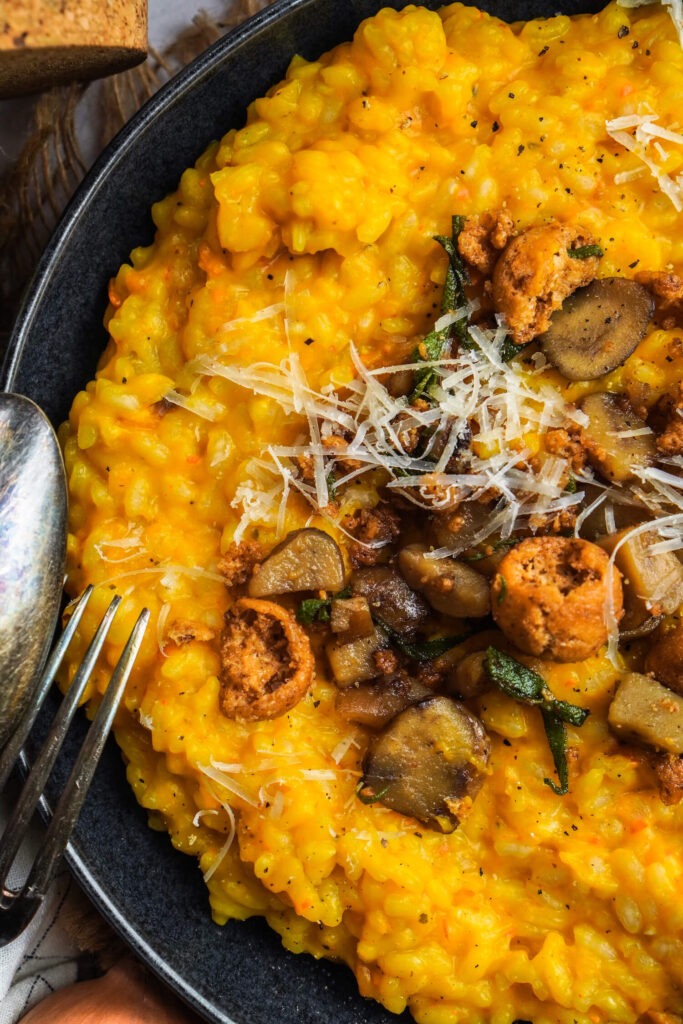 Kürbis Risotto mit Maronen, Salbeibutter & Amarettini