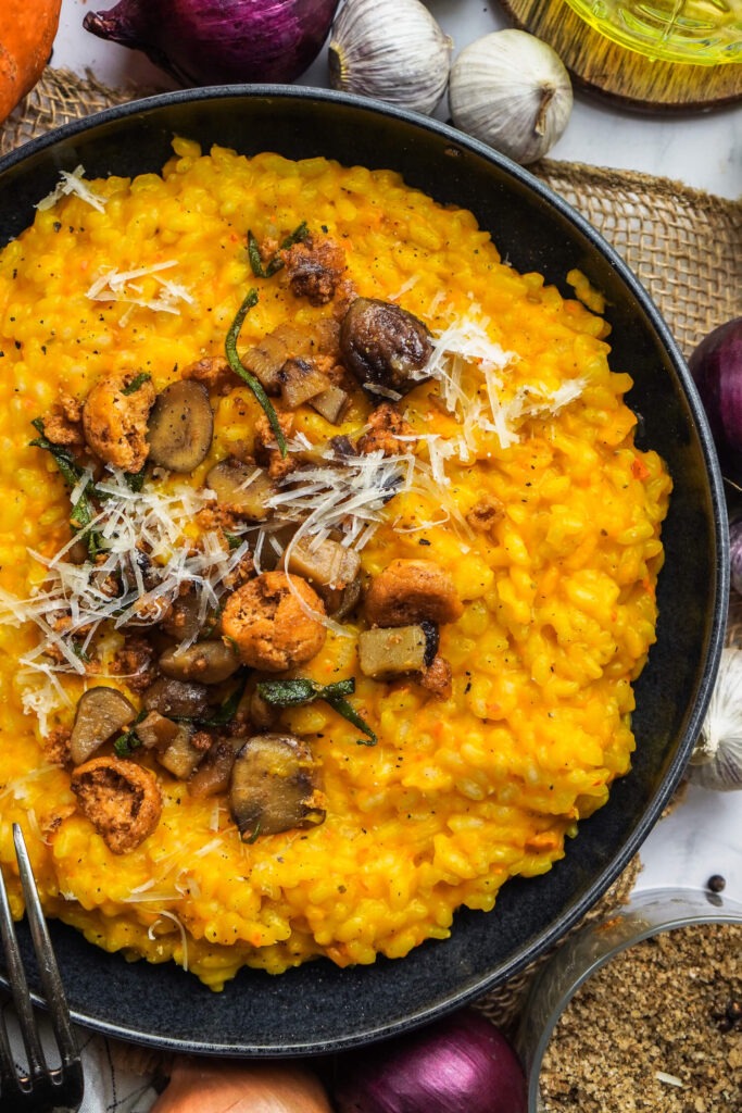Herbstliches Kürbis Risotto Maronen Amarettini