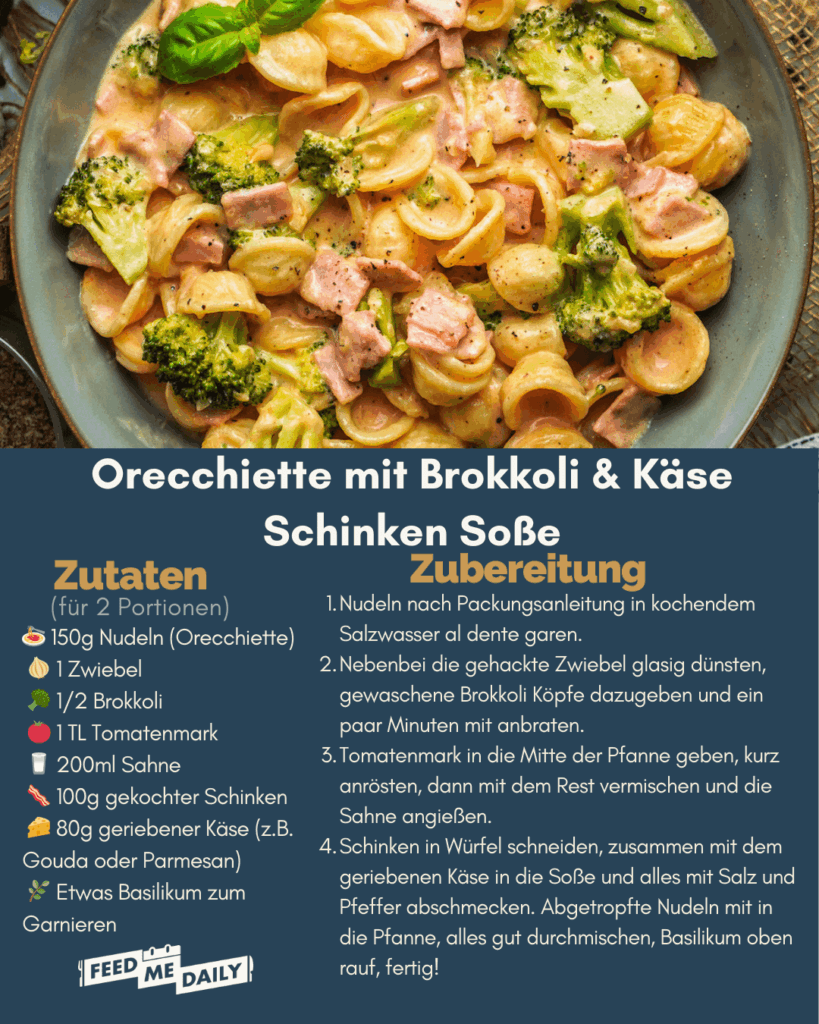 Besonders die Kombi mit dem Brokkoli finde ich sehr lecker, etwas Käse dazu und schon wird auch die Soße im Handumdrehen richtig gut!