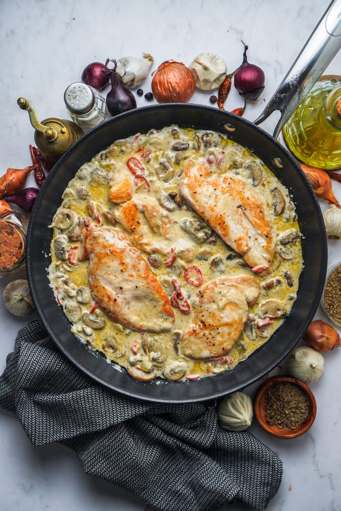 Da euch das letzte Hähnchen Gericht so gut gefallen hat, habe ich nun nochmal eine Variante mit Champignons gemacht – auch total lecker!