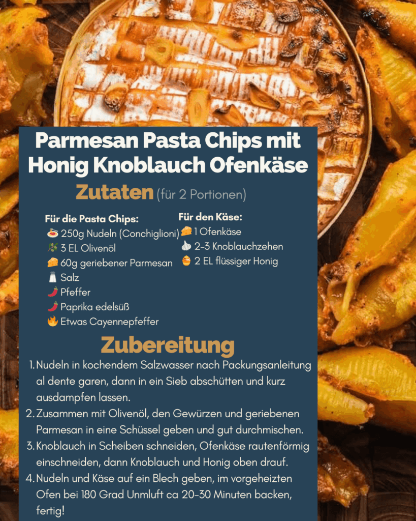 Ja, die Pasta Chips funktionieren auch im Airfryer sehr gut. Bei etwa 180 °C werden sie in 10–12 Minuten knusprig, zwischendurch einmal durchschütteln.