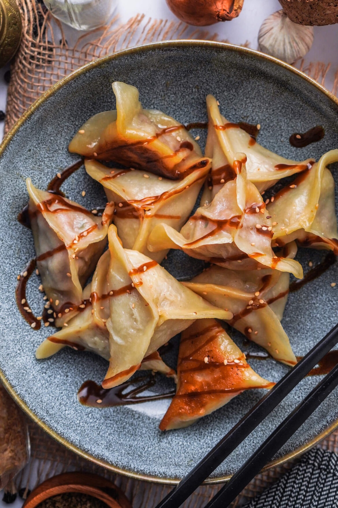 Heute gibt’s noch mal einen leckere Portion Dumplings, diesmal aber in einer veganen Variante mit scharfen Pilzen 🙂