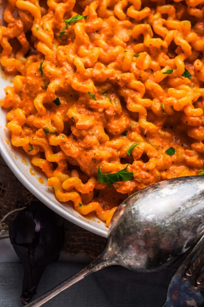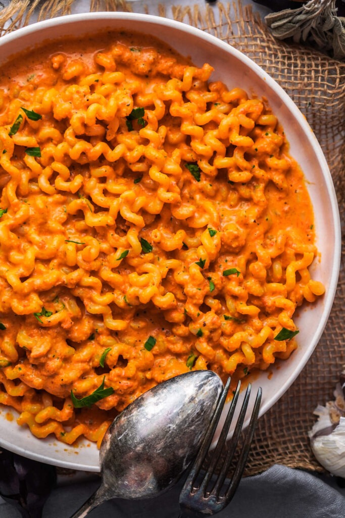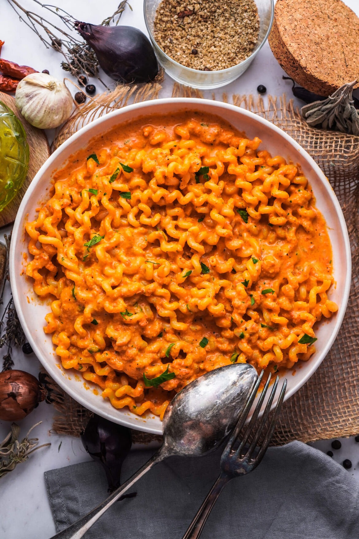 Pesto Pasta mit gerösteter Paprika & Frischkäse