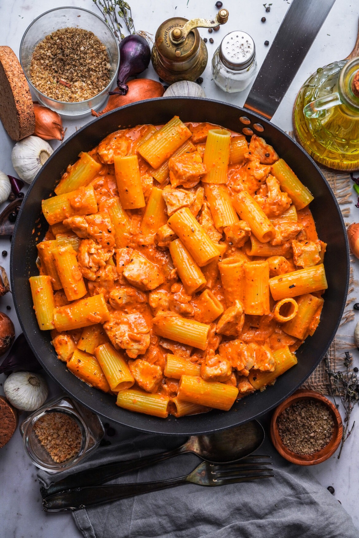 Rigatoni Pasta mit Ajvar Parmesan Hähnchen