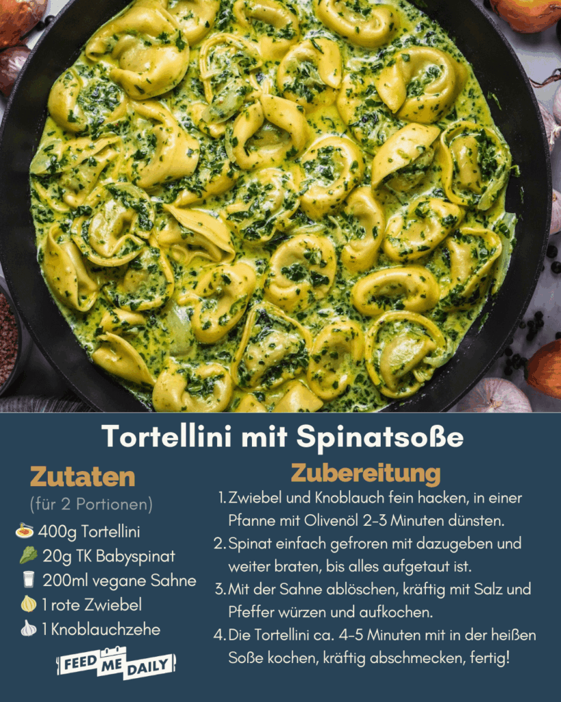 Die Kombination aus zarten Tortellini und würziger Spinatsoße macht das Gericht besonders cremig und alltagstauglich. Ideal für alle, die ein einfaches Rezept suchen, das schnell gelingt und richtig gut schmeckt.