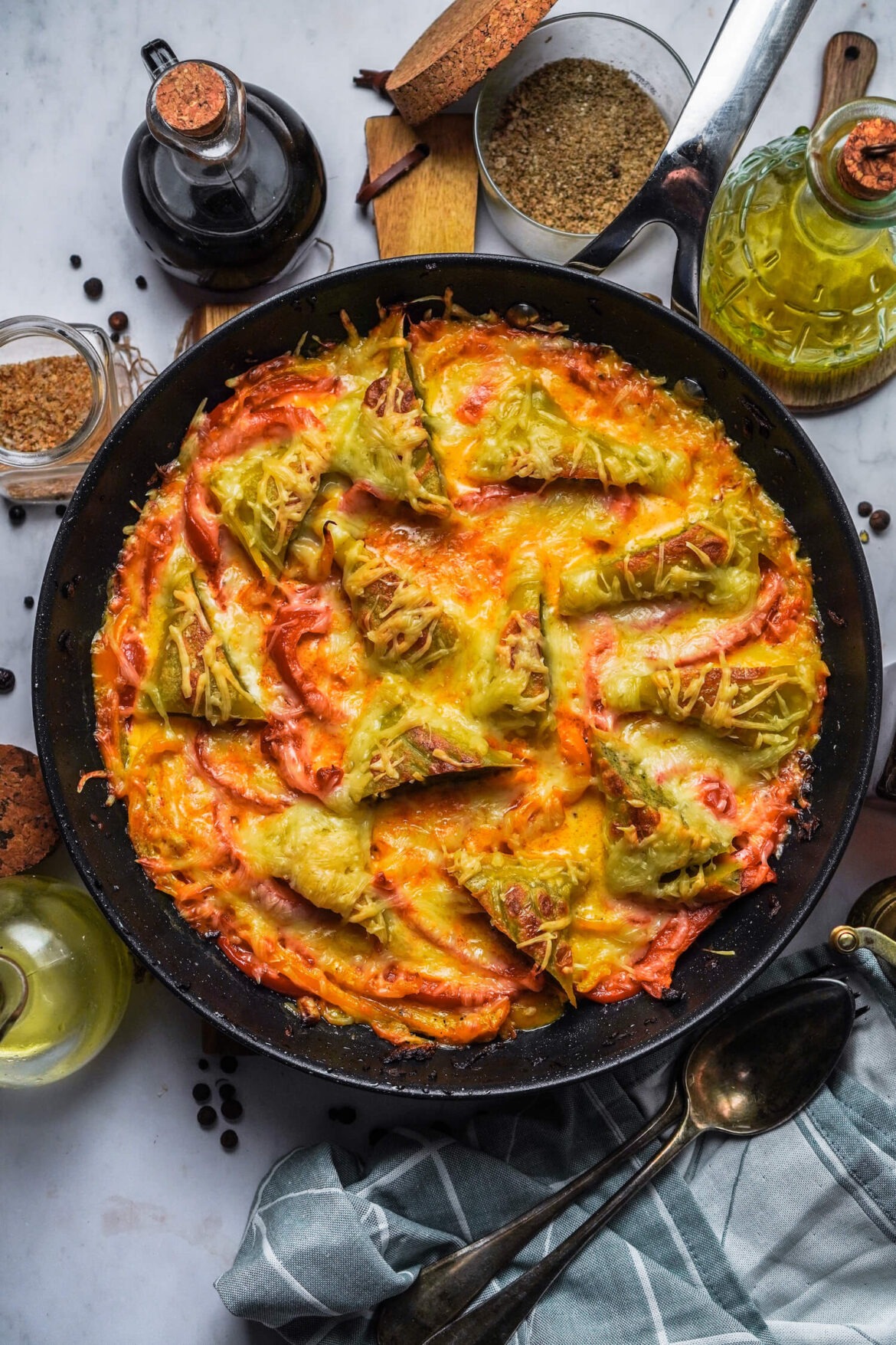 Diese Überbackene Maultaschen Pfanne ist richtig einfach gemacht & eignet sich daher perfekt für die Mittagspause im Homeoffice oder den entspannten Feierabend.